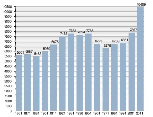 في سنة 1861 بلغ عدد السكان 5٬601 نسمة، وتطور العدد ليصل في سنة 2011 لـ 10٬409 نسمة.