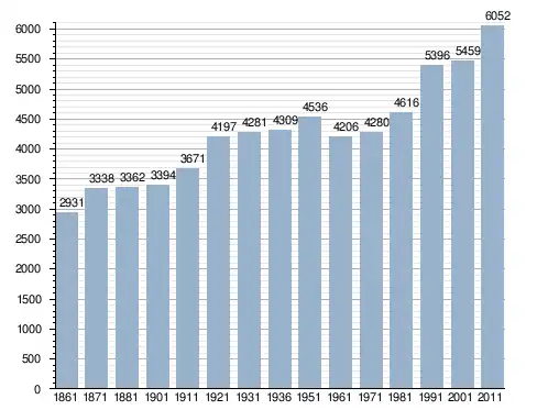 في سنة 1861 بلغ عدد السكان 2٬931 نسمة، وتطور العدد ليصل في سنة 2011 لـ 6٬052 نسمة.
