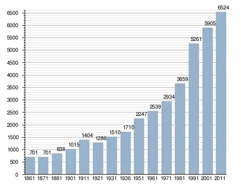 في سنة 1861 بلغ عدد السكان 701 نسمة، وتطور العدد ليصل في سنة 2011 لـ 6٬524 نسمة.