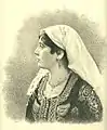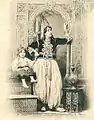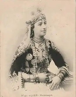 بورتريه لامراة من الجزائر بالكاراكو و مزينة بمختلف الحلي التقليدي، نهاية القرن التاسع عشر