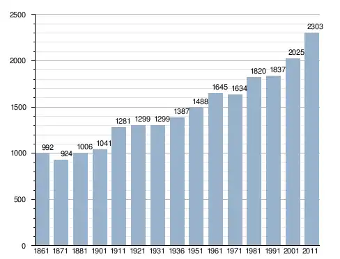 في سنة 1861 بلغ عدد السكان 992 نسمة، وتطور العدد ليصل في سنة 2011 لـ 2٬303 نسمة.