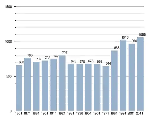 في سنة 1861 بلغ عدد السكان 660 نسمة، وتطور العدد ليصل في سنة 2011 لـ 1٬055 نسمة.