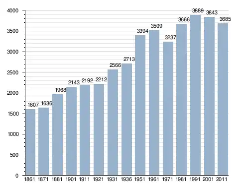 في سنة 1861 بلغ عدد السكان 1٬607 نسمة، وتطور العدد ليصل في سنة 2011 لـ 3٬685 نسمة.
