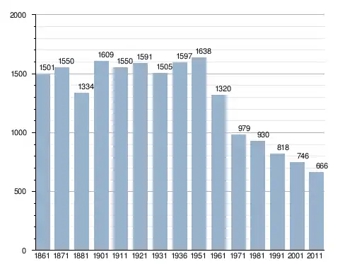 في سنة 1861 بلغ عدد السكان 1٬501 نسمة، وتطور العدد ليصل في سنة 2011 لـ 666 نسمة.