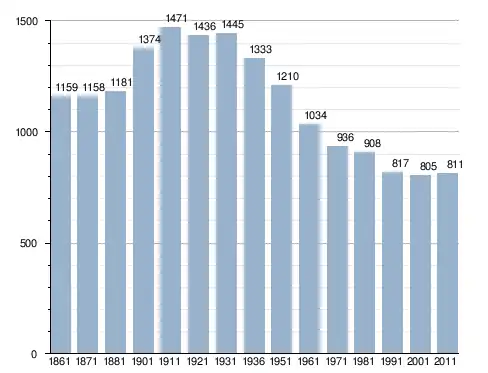 في سنة 1861 بلغ عدد السكان 1٬159 نسمة، وتطور العدد ليصل في سنة 2011 لـ 811 نسمة.