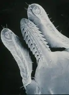 يظهر الكارِح بشكل شائك في الوَسط لدى اللبود حَلقي الهالة ويحيط به زَوج من اللامسات