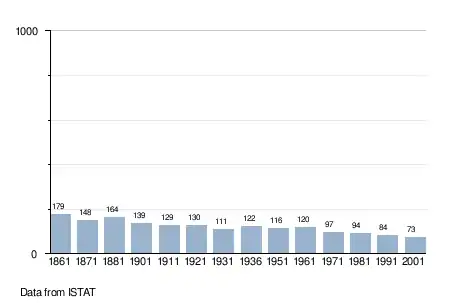 |CitationClass=تم تجاهله (مساعدة) - كل التركيبة السكانية وغيرها من الإحصاءات: الإيطالية معهد الإحصاء الوطني للإحصاءات.