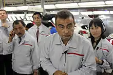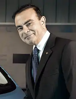 كارلوس غصن (بالإنجليزية: Carlos Ghosn) رجل أعمال لبناني يحمل الجنسية البرازيلية والفرنسية [8] ولد في التاسع من مارس 1954 في مدينة بورتو فاليو البرازيلية. شغل منصب رئيس مجلس الإدارة والرئيس التنفيذي لشركتي نيسان (بالإنجليزية: Nissan) اليابانية، ورينو (بالإنجليزية: Renault) الفرنسية، ورئيس مجلس الإدارة لشركة ميتسوبيشي موتورز (بالإنجليزية: Mitsubishi Motors)، ومنذ يونيو 2013 إلى يونيو 2016 عمل رئيسا لمجلس إدارة مصنع السيارات الروسية أفتوفاز.[9][10][11] بالإضافة إلى ذلك فقد شغل منصب رئيس مجلس إدارة والرئيس التنفيذي لتحالف رينو-نيسان (الشراكة الاستراتيجية لنيسان ورينو التي تمت بناء على اتفاقية مساهمة فريدة من نوعها). استحوذت منتجات هذا التحالف، والذي يضم أفتوفاز وميتسوبيشي، منذ سنة 2010 على ما يقارب من 10% من السوق العالمي إلى أن أصبح عام 2016 واحد من أكبر أربع مجموعات منتجة للسيارات في جميع أنحاء العالم.[12][13][14][15][16]
