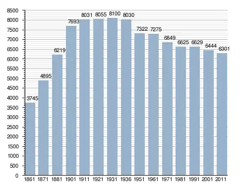 في سنة 1861 بلغ عدد السكان 3٬745 نسمة، وتطور العدد ليصل في سنة 2011 لـ 6٬301 نسمة.
