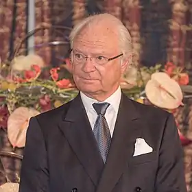 الملك كارل السادس عشر غوستاف (30 أبريل 1946 -)، ملك السويد منذ 15 سبتمبر 1973 خلفًا لجده لأبيه الملك غوستاف السادس أدولف.[20]