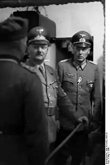 ![]() كارل وينريش (في المنتصف)، تم تصويره بجولة في التحصين الألماني على طول نهر الراين | |
