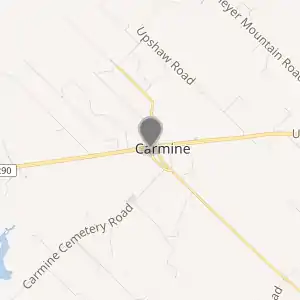 كارمين (بالإنجليزية: Carmine, Texas) هي مدينة تقع بولاية تكساس في شمال شرق الولايات المتحدة. تبلغ مساحة هذه المدينة 4.3 (كم²)، وترتفع عن سطح البحر 132 م، بلغ عدد سكانها 228 نسمة في عام 2000 حسب إحصاء مكتب تعداد الولايات المتحدة وتصل الكثافة السكانية فيها 53.4 نسمة/كم2.[3]