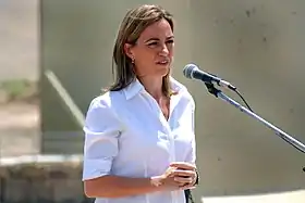 - كارمي تشاكون وزيرة الدفاع الإسبانية السابقة المنتمية إلى حزب العمال الأشتراكي تتحدث خلال المؤتمر العام للحزب نسخة محفوظة 10 أبريل 2017 على موقع واي باك مشين.
