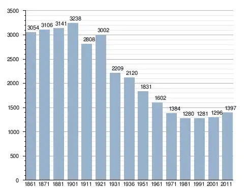 في سنة 1861 بلغ عدد السكان 3٬054 نسمة، وتطور العدد ليصل في سنة 2011 لـ 1٬397 نسمة.