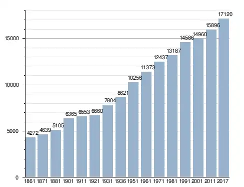 في سنة 1861 بلغ عدد السكان 4٬272 نسمة، وتطور العدد ليصل في سنة 2017 لـ 17٬120 نسمة.