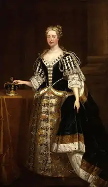 كانت ويلهلمينا شارلوت كارولين براندنبورغ-أنسباخ (1 مارس 1683 - 20 نوفمبر 1737[3])،المعروفه باسم كارولين أنسباخ، ملكة بريطانيا العظمى باعتبارها زوجة جورج الثاني ملك بريطانيا العظمى. ينتمى والدها، مرغريف جون فريدريك براندنبورغ-أنسبتش، إلى فرع من آل آل هوهنتسولرن وقد كان حاكما لدولة ألمانية صغيرة، اماره انسبتش. تيتمت كارولين في عمر مبكر وانتقلت إلى البلاط المستنير لاوليائها،فريدريك الأول ملك بروسياوصوفي شارلوته بروسيا. اتسع تعليمها الذي كان محدودا في السابق، في البلاط البروسى، وانتهجت النظرة الليبراليه التي تنتهجها صوفيا شارلوت، التي اصبحت صديقتها المقربة والتي أثرت وجهات نظرها في كارولين طيله حياتها.كامرأه شابه، لاقت كارولين كثيرا من السعى خلفها كعروس.بعد رفضها دعوى زواج من الملك الاسمى الاسبانيا، الأرشيدوق كارل من النمسا، تزوجت جورج اوغسطس، الولي الثالث للعرش البريطانى والوريث الوحيد لناخبين هانوفر. كان لديهم ثمانيه اطفال، سبعه منهم نموا إلى مرحله البلوغ. انتقلت كارولين إلى بريطانيا بشكل دائم في عام 1714 عندما أصبح زوجها أميرا لويلز. انضمت، كأميره لويلز، إلى زوجهافى حشد المعارضة السياسيه على والده الملك جورج الأول في عام 1717، طردزوجها من البلاط الملكى في اعقاب خلاف عائلى. اصبحت كارولين على علاقه بروبرت والبول، وهو سياسى معارض وقد كان وزيرََا سابقا فالحكومة. عاد والبول لينضم للحكومة في عام 1720، وقد تصالح زوج كارولين والملك جورج الأول علنا، بناءََا على نصيحه والبول. ارتفع والبول على مدى السنوات القليله المقبله، ليصبح وزيرا حاكما. نجحت كارولين كملكه وزوجه للحاكم في عام 1727، عندما اصبح زوجها الملك جورج الثانى. أصبح ابنها الأكبر، فريدريك، اميرََا لويلز. كان تركيزه على المعارضة كوالده من قبله وقد كانت علاقه كارولين به متوتره. كان معروفا عن كارولين، كاميره وملكه، نفوذها السياسى، الذي كانت تمارسه من خلال والبول. اتسعت ولايتها لاربعه مقاطعات خلال اقامه زوجها في هانوفر، ويرجع لها الفضل خلال فتره عدم الاستقرار السياسى في تعزيز مكانه سلاله هانوفر في بريطانيا. عم الحزن على نطاق واسع على وفاه كارولين في عام 1737، ليس فقط من قبل العامه ولكن ايضا من قبل الملك، الذي رفض الزواج مره اخرى.