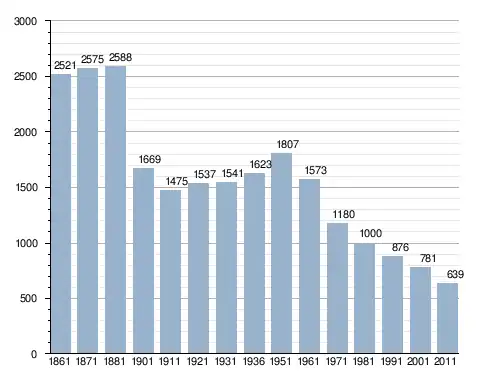 في سنة 1861 بلغ عدد السكان 2٬521 نسمة، وتطور العدد ليصل في سنة 2011 لـ 639 نسمة.