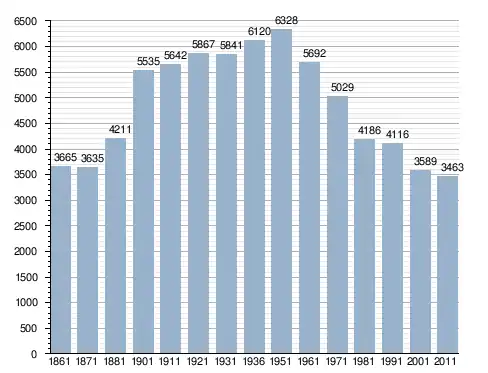 في سنة 1861 بلغ عدد السكان 3٬665 نسمة، وتطور العدد ليصل في سنة 2011 لـ 3٬463 نسمة.