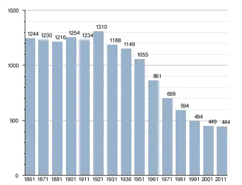 في سنة 1861 بلغ عدد السكان 1٬244 نسمة، وتطور العدد ليصل في سنة 2011 لـ 444 نسمة.