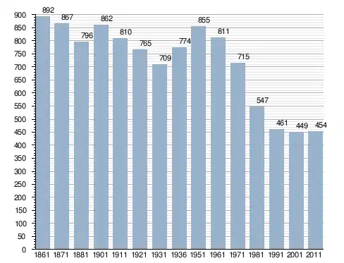 في سنة 1861 بلغ عدد السكان 892 نسمة، وتطور العدد ليصل في سنة 2011 لـ 454 نسمة.