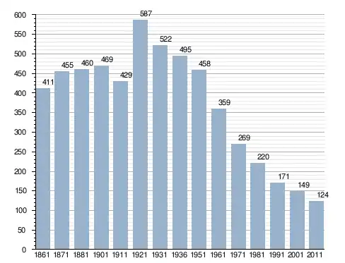 في سنة 1861 بلغ عدد السكان 411 نسمة، وتطور العدد ليصل في سنة 2011 لـ 124 نسمة.
