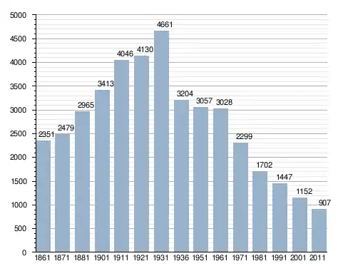 في سنة 1861 بلغ عدد السكان 2٬351 نسمة، وتطور العدد ليصل في سنة 2011 لـ 907 نسمة.