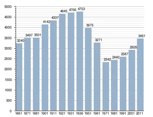 في سنة 1861 بلغ عدد السكان 3٬240 نسمة، وتطور العدد ليصل في سنة 2011 لـ 3٬461 نسمة.