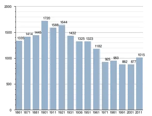في سنة 1861 بلغ عدد السكان 1٬335 نسمة، وتطور العدد ليصل في سنة 2011 لـ 1٬015 نسمة.