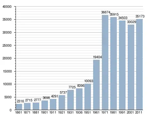 في سنة 1861 بلغ عدد السكان 2٬316 نسمة، وتطور العدد ليصل في سنة 2011 لـ 35٬173 نسمة.