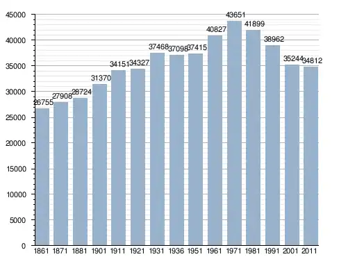 في سنة 1861 بلغ عدد السكان 26٬755 نسمة، وتطور العدد ليصل في سنة 2011 لـ 34٬812 نسمة.
