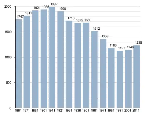في سنة 1861 بلغ عدد السكان 1٬747 نسمة، وتطور العدد ليصل في سنة 2011 لـ 1٬235 نسمة.