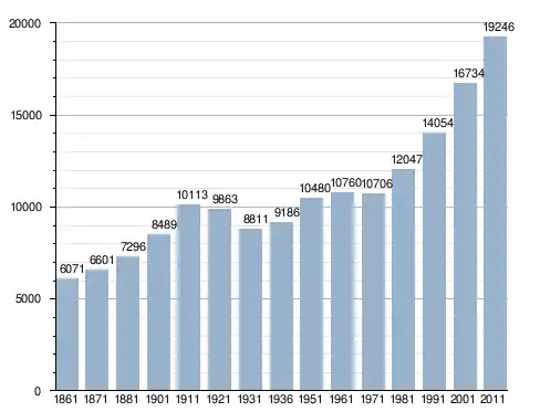 في سنة 1861 بلغ عدد السكان 6٬071 نسمة، وتطور العدد ليصل في سنة 2011 لـ 19٬246 نسمة.