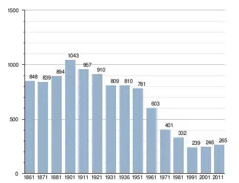 في سنة 1861 بلغ عدد السكان 848 نسمة، وتطور العدد ليصل في سنة 2011 لـ 265 نسمة.
