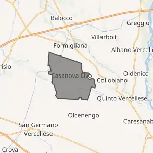 تقع كازانوفا إلفو على حدود البلديات التالية: كولوبيانو، فورميليانا، أولشيننغو، سان جرمانو فيرسيلسي، سانثيا، فيلاربويت.