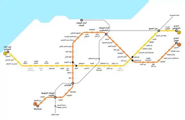 | خطوط الشبكة | الخط الأول لطرامواي الدار البيضاء الخط الثاني لطرامواي الدار البيضاء |