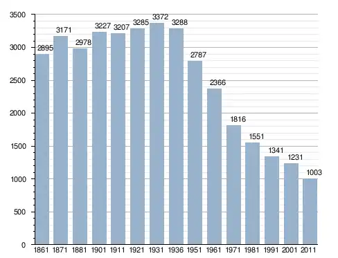 في سنة 1861 بلغ عدد السكان 2٬895 نسمة، وتطور العدد ليصل في سنة 2011 لـ 1٬003 نسمة.