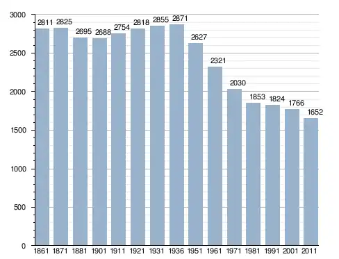 في سنة 1861 بلغ عدد السكان 2٬811 نسمة، وتطور العدد ليصل في سنة 2011 لـ 1٬652 نسمة.