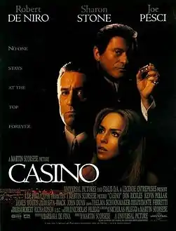 كازينو (بالإنجليزية: Casino) هو فيلم أمريكي أنتج عام 1995 من إخراج مارتن سكورسيزي عن كتاب بنفس الاسم ل نيكولاس بيليجي ولاري شاندلنج. يلعب روبرت دي نيرو (بالإنجليزية: Robert De Niro) دور سام "آيس" روثشتاين وهو مدير نادي للقمار تم تعيينه من قبل المافيا للأشراف على أحد النوادي التابعة لها في لاس فيجاس، وهي شخصية مبنية على الحياة الحقيقية لرجل العصابات فرانك روزنثال والذي أدار نوادي ستاردست وفريمونت وهاسييندا في لاس فيجاس خلال فترة السبعينات إلى أوائل الثمانينات. بينما يلعب جو بيشي (بالإنجليزية: Joe Pesci) دور نيكي سانتورو وهو محصل أموال ومنفذ أوامر لأحد عصابات المافيا من شيكاغو يتم ارساله إلى لاس فيجاس للتاكد من حصول المافيا على نصيبها من أموال للقمار ولضبط رجال المافيا هناك. وهي شخصية مبنية على الحياة الحقيقية لرجل العصابات آنثوني سبيلوترو والملقّب ب توني النملة. وتلعب شارون ستون دور جنجر، زوجة سام روثنشتاين المدللة والمغرورة والخبيثة، وقد رشحت عن هذا الدور لجائزة الأوسكار كأفضل ممثلة رئيسية.