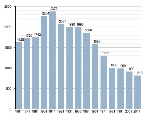في سنة 1861 بلغ عدد السكان 1٬625 نسمة، وتطور العدد ليصل في سنة 2011 لـ 813 نسمة.