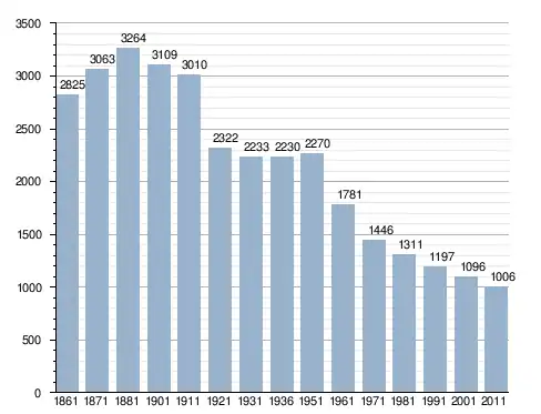 في سنة 1861 بلغ عدد السكان 2٬825 نسمة، وتطور العدد ليصل في سنة 2011 لـ 1٬006 نسمة.