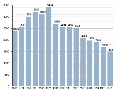 في سنة 1861 بلغ عدد السكان 2٬379 نسمة، وتطور العدد ليصل في سنة 2011 لـ 1٬463 نسمة.