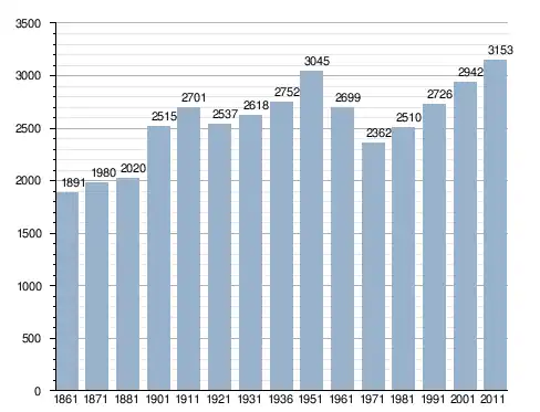 في سنة 1861 بلغ عدد السكان 1٬891 نسمة، وتطور العدد ليصل في سنة 2011 لـ 3٬153 نسمة.