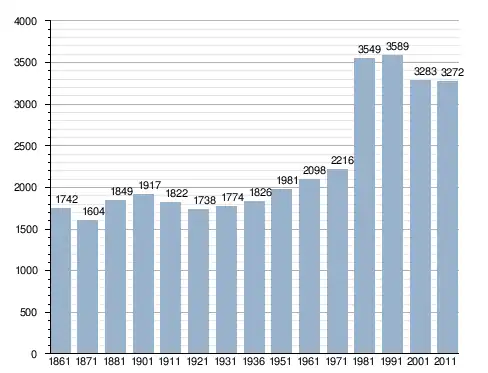 في سنة 1861 بلغ عدد السكان 1٬742 نسمة، وتطور العدد ليصل في سنة 2011 لـ 3٬272 نسمة.
