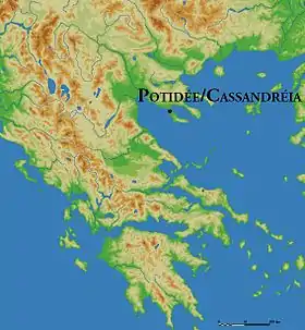 - POTEIDAIA (Nea Poteidaia) Chalkidike, Greece, entry in The Princeton Encyclopedia of Classical Sites. نسخة محفوظة 24 سبتمبر 2015 على موقع واي باك مشين.