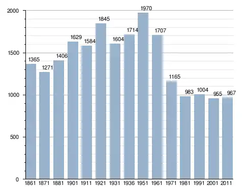 في سنة 1861 بلغ عدد السكان 1٬365 نسمة، وتطور العدد ليصل في سنة 2011 لـ 967 نسمة.