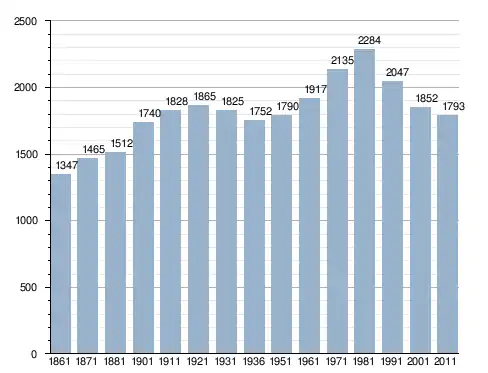في سنة 1861 بلغ عدد السكان 1٬347 نسمة، وتطور العدد ليصل في سنة 2011 لـ 1٬793 نسمة.
