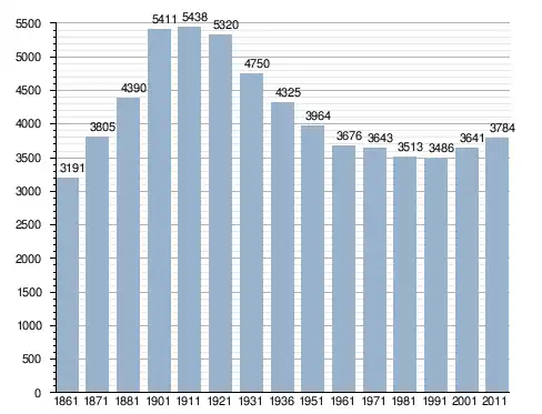 في سنة 1861 بلغ عدد السكان 3٬191 نسمة، وتطور العدد ليصل في سنة 2011 لـ 3٬784 نسمة.