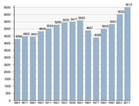 في سنة 1861 بلغ عدد السكان 4٬286 نسمة، وتطور العدد ليصل في سنة 2011 لـ 6٬512 نسمة.