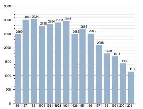 في سنة 1861 بلغ عدد السكان 2٬490 نسمة، وتطور العدد ليصل في سنة 2011 لـ 1٬138 نسمة.