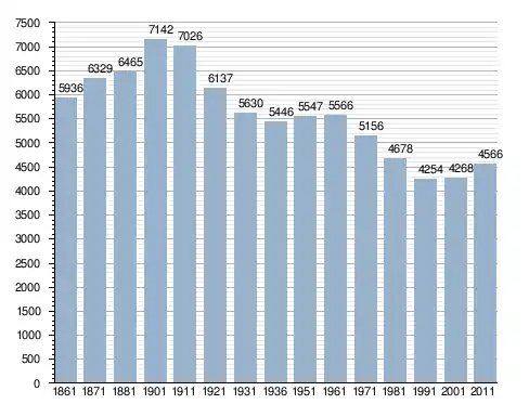 في سنة 1861 بلغ عدد السكان 5٬936 نسمة، وتطور العدد ليصل في سنة 2011 لـ 4٬566 نسمة.